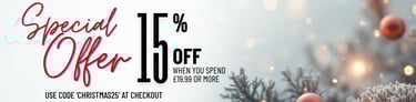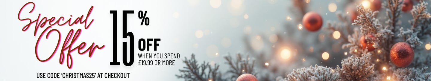 Christmas offer - 15% off when you spend over £19.99 (not including P&P) - use code 'CHRISTMAS25' at checkout